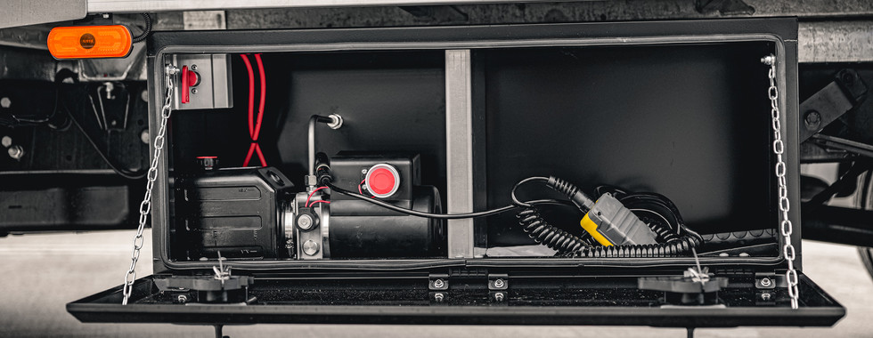 -Metal Toolbox with power pack fitted inside and storage space making sure the power pack is not weathered by the elements